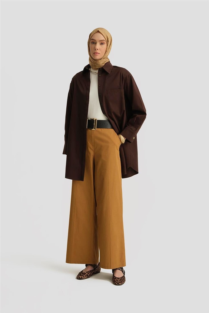 Armine Yüksek Bel Palazzo Pantolon 25Y2812 Acı Kahve