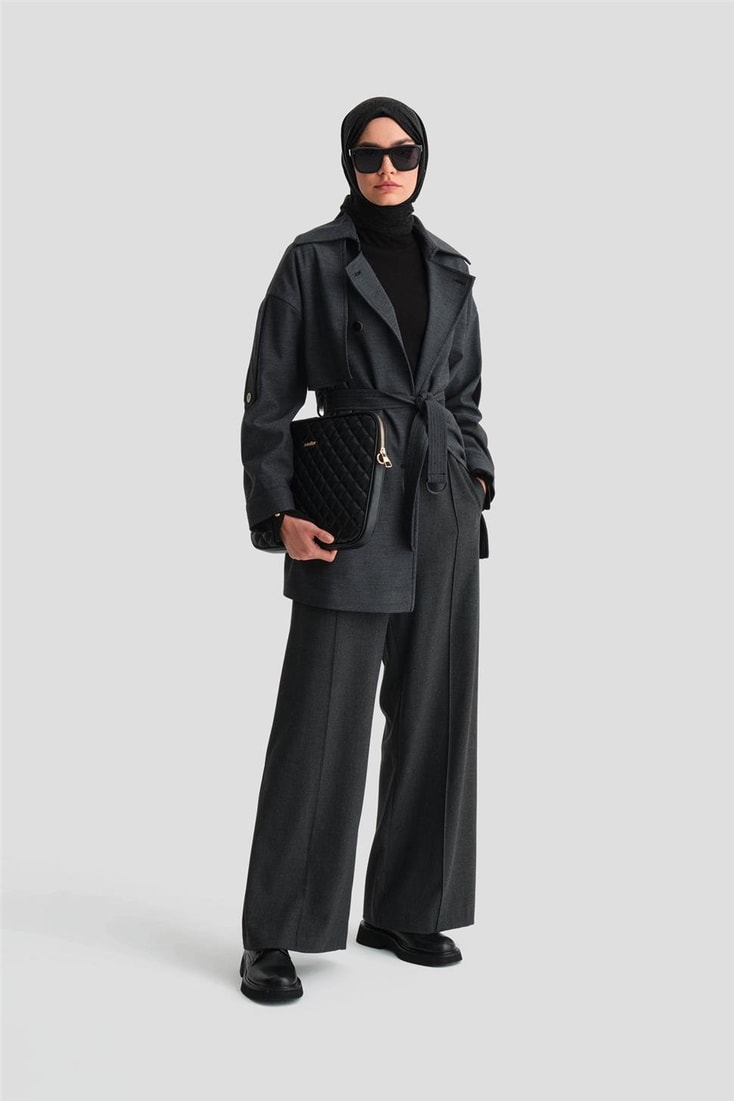Armine Beli Lastikli Palazzo Pantolon 25K2703 Antrasit