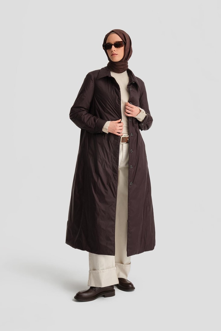 Armine Seyyar Kemerli Kapitone Kaban 24K7602 Kahverengi